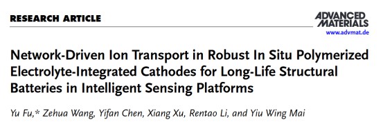 基于该高性能固态电解质,团队进一步开发出结构电池复合材料,兼具高机械承载力与离子传输效率,可稳定循环并驱动温度、距离、光照等传感器,实现自供能智能响应。该技术为电动汽车、无人机及航空航天的轻量化、集成化能源系统提供新方案。目前,该团队正致力于推动该技术在飞行器上的应用与验证。